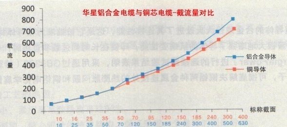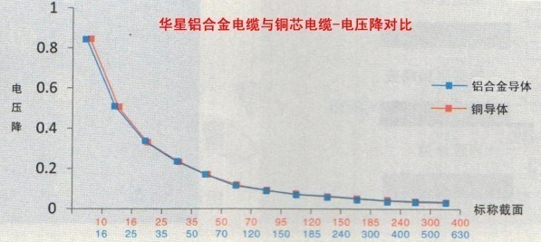 鋁合金電纜和銅芯電纜在同截面同等長度的情況下,其導電率是銅電纜的 61.8%,載流量約為銅電纜的78%,但其質量不到同等電氣性能銅纜的一半。根據(jù)電纜截面的規(guī)格分布,將鋁合金電纜的截面增大1.5倍左右,載流量與電壓降等電氣參數(shù)與銅纜相當,因此在已知銅電纜型號規(guī)格的前提下,只需按照70及70以下小規(guī)格的銅纜對應使用加大一個規(guī)格的鋁合金電纜,95及95以上直接對應使用加大兩個個規(guī)格的鋁合金電纜即可,其電氣性能、機械性能及相應的應用指標與原銅芯電纜設計標準一致,其實際使用性能更優(yōu)于原有的銅芯電纜設計標準。